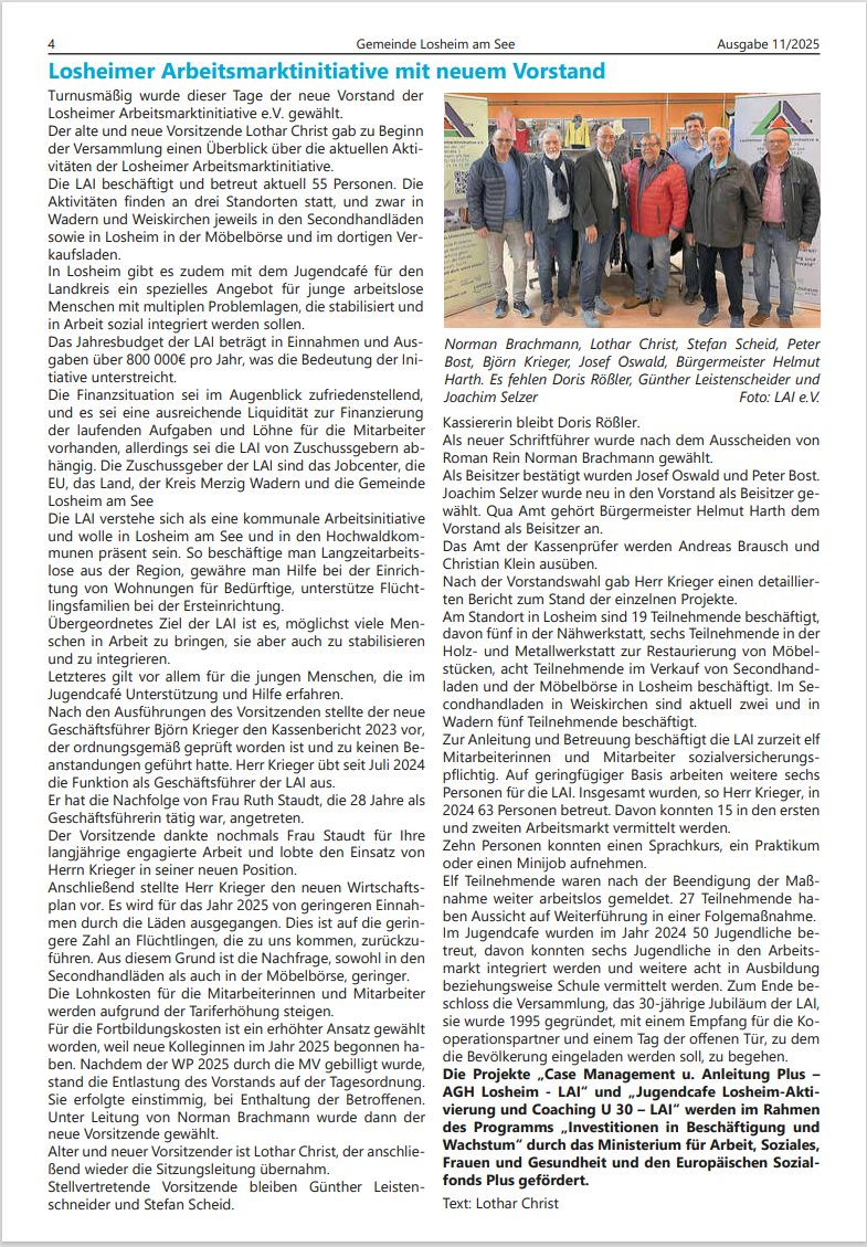 Amtliches Bekanntmachungsblatt der Gemeinde Losheim am See | LAI mit neuem Vorstand |
